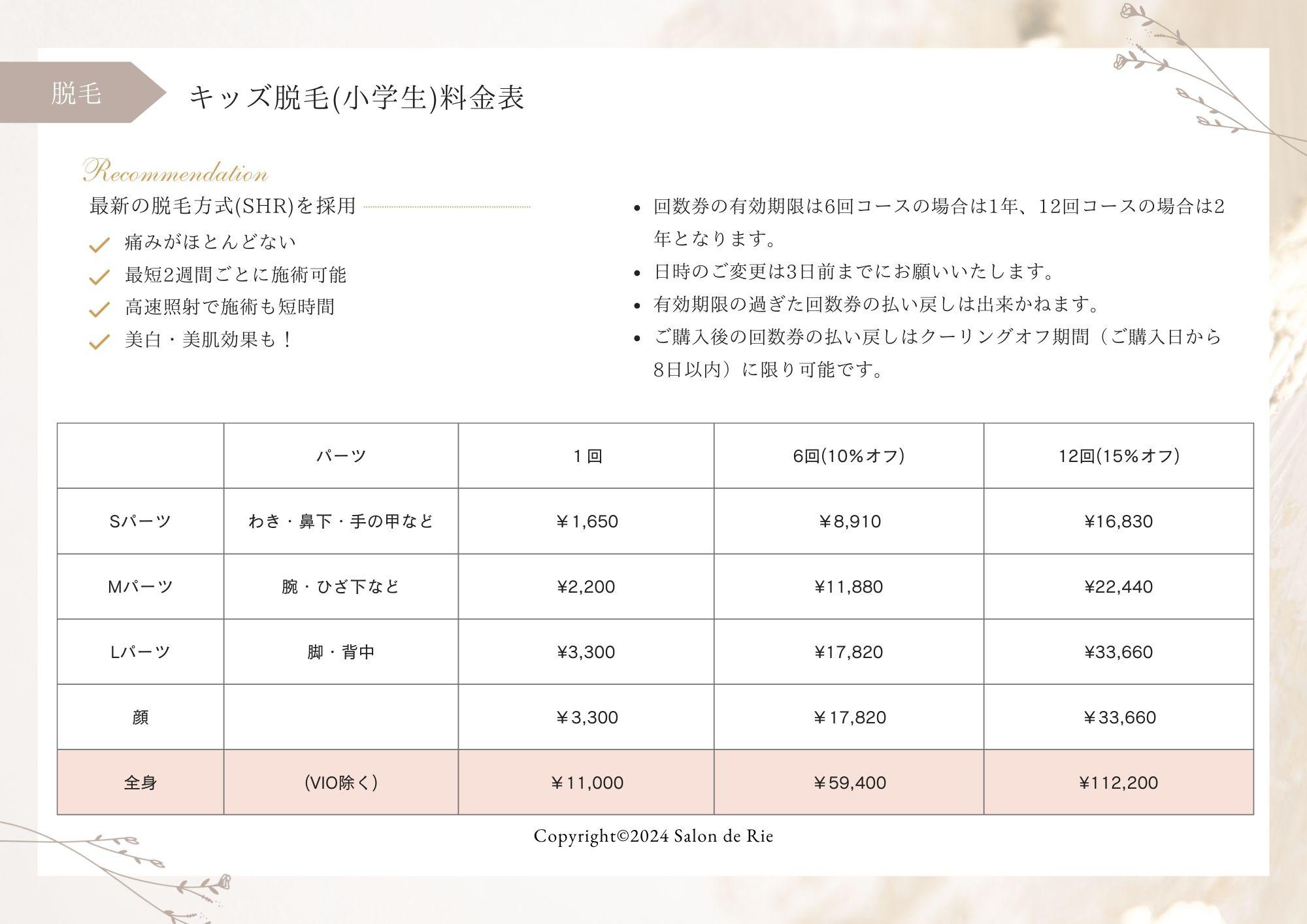 キッズ脱毛(小学生)